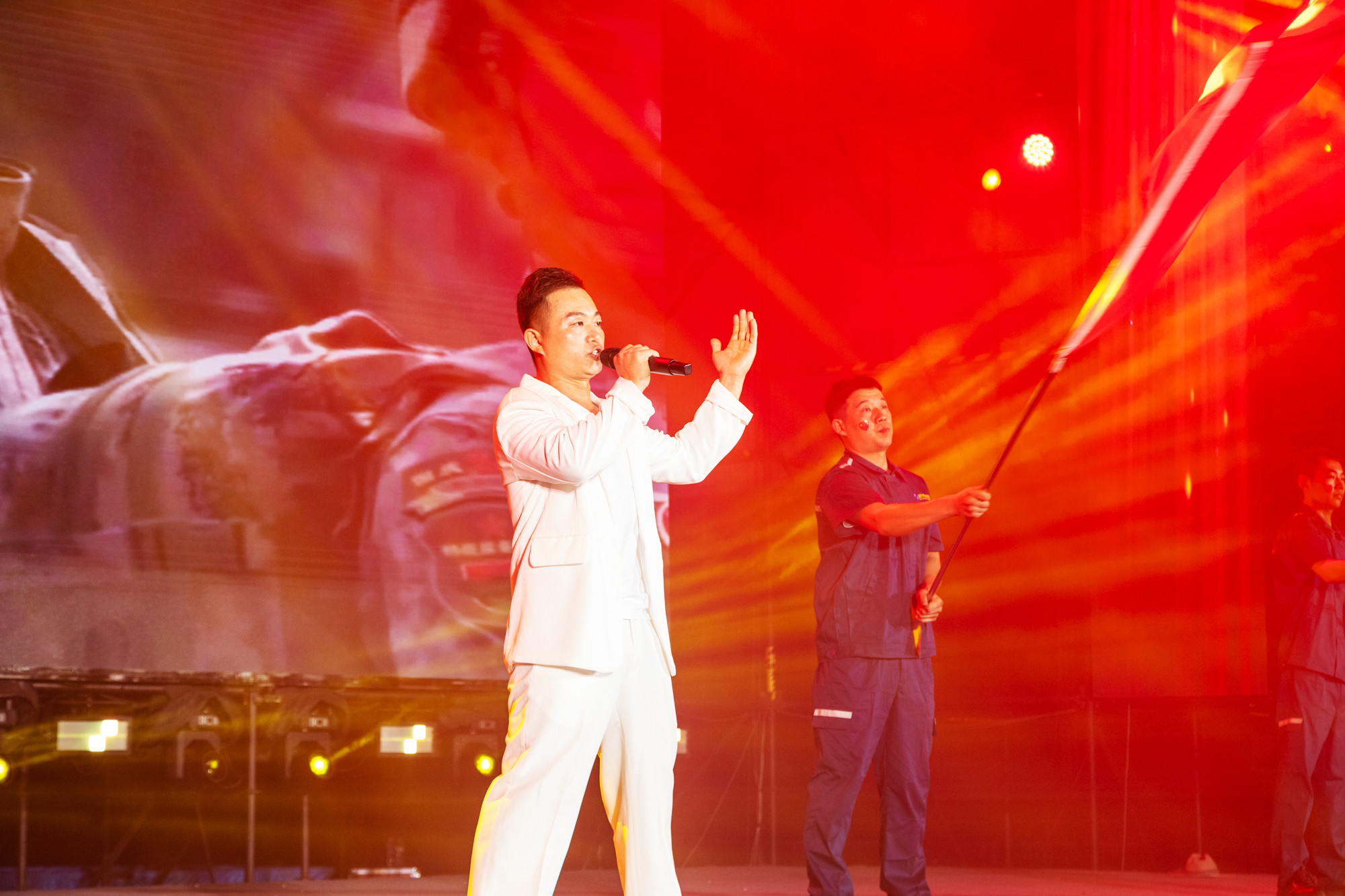 演出在舞蹈《盛世歡歌》的歡快熱烈節(jié)奏中激情開(kāi)場(chǎng),舞者們以優(yōu)美的舞姿瞬間點(diǎn)燃了現(xiàn)場(chǎng)的熱情。隨后,經(jīng)典集團(tuán)董事會(huì)主席苗樹(shù)文發(fā)表了熱情洋溢的致辭,對(duì)前來(lái)參會(huì)的領(lǐng)導(dǎo)及嘉賓表示了最誠(chéng)摯的歡迎和衷心的感謝。接著,歌曲《我們的時(shí)光》《包容》《諾言》《紅日》《故鄉(xiāng)》、舞蹈《眉飛色舞》、戲曲《變臉》《穆桂英掛帥》、架子鼓樂(lè)器表演《逆戰(zhàn)》等20個(gè)節(jié)目輪番上演,形式多樣,精彩紛呈,現(xiàn)場(chǎng)掌聲雷動(dòng),歡笑聲此起彼伏。晚會(huì)中穿插的抽獎(jiǎng)環(huán)節(jié),將現(xiàn)場(chǎng)氛圍推向了高潮。最后,晚會(huì)在合唱《歌唱祖國(guó)》中徐徐落下帷幕,集團(tuán)領(lǐng)導(dǎo)上臺(tái)與演職人員合影留念。
