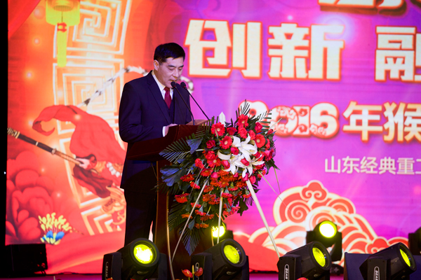 2月1日,山東經(jīng)典重工集團(tuán)股份有限公司在宴會(huì)中心舉辦“創(chuàng)新 融合 升級(jí)”2016年猴舞新春團(tuán)拜會(huì),慶祝新春佳節(jié)的到來(lái)。經(jīng)典集團(tuán)各子、分公司部分員工及家屬代表千余人參加團(tuán)拜會(huì)。