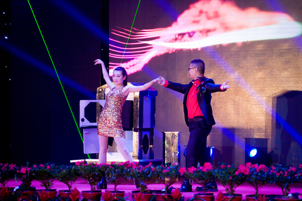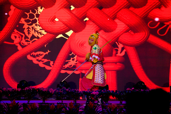 文藝演出在舞蹈《金猴鬧春》中拉開了帷幕,表演者把美猴王孫悟空的形象塑造得惟妙惟肖,帶給觀眾猴年新春祝福。魔術(shù)《魔幻世界》、京劇《變臉》、山東快書、李玉剛反串等節(jié)目無(wú)不令現(xiàn)場(chǎng)觀眾拍手叫好。舞蹈《綻放》《sugarfree》以優(yōu)美的舞姿、嫻熟的配合跳出了年輕人的活力與激情。歌曲《喜事多》《越來(lái)越好》《相親相愛一家人》通過(guò)優(yōu)美的旋律,唱出了經(jīng)典人的心聲。來(lái)自本山傳媒公司的東北二人轉(zhuǎn)小沈龍團(tuán)隊(duì)的精彩表演成為演出的一大亮點(diǎn),他們通過(guò)夸張、幽默、生動(dòng)的表演,贏得了臺(tái)下一陣陣喝彩聲,特別是小沈龍的臺(tái)上臺(tái)下互動(dòng),把歡聲笑語(yǔ)和新年祝福帶給了現(xiàn)場(chǎng)觀眾,將整臺(tái)演出推向了高潮。