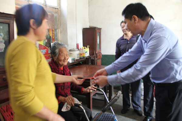 在漕河鎮后邴村特困戶家中,初部長和苗董事長都噓寒問暖,與老人們親切交談,關切地詢問他們的生活和身體情況,了解老人們的生活需求,送上了慰問品和慰問金,并致以節日問候,祝老人們節日快樂、健康長壽、生活幸福。