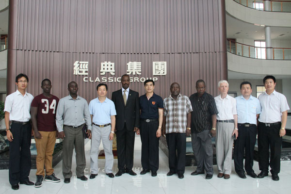 7月15日--17日由中國信息協會民營企業分會組織,盧旺達駐華使館查爾斯大使作為非洲經貿考察團團長率領烏干達駐華大使、南蘇丹駐華公使、阿爾巴尼亞駐華大使以及盧旺達駐華商務參贊到經典集團洽談業務合作。中國信息協會民營企業分會會長張鋁,國際部部長關偉娜,中國駐湯加王國前大使孫增森,經典集團董事長苗樹文,總經理杜福生及有關人員等陪同了此次活動。